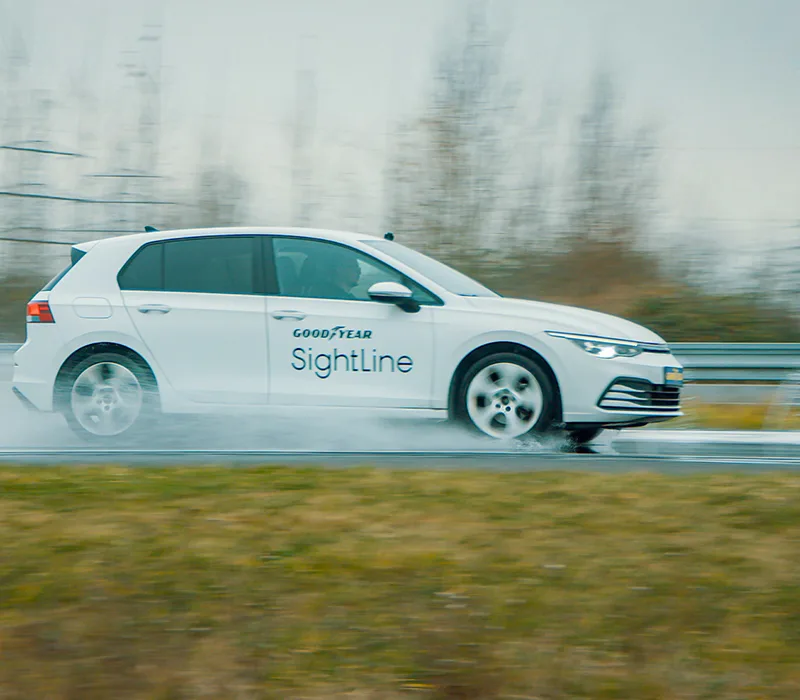 Las pruebas recientes en carreteras mojadas indican que un sistema AEB mejorado, que incorpora la tecnología Goodyear SightLine, tiene el potencial de ayudar a mitigar impactos a velocidades de hasta 80 km/h (50 mph) al activar el frenado más temprano. En general, la integración del AEB con los datos de las condiciones de los neumáticos y la carretera proporcionados por SightLine ayuda a garantizar un rendimiento robusto en diversos escenarios.