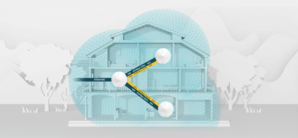 Vamos a ponernos un poco técnicos pero no te asustes, el Deco M5 V3.20 es un sistema Wi-Fi Mesh de doble banda AC1300 que cubre hasta 510 m². Gracias a su tecnología mesh, digamos que es como una red de malla invisible donde todas las unidades trabajan juntas para ofrecer una red única con un solo nombre y contraseña, contrario a otros extensores donde cada punto es una red diferente.