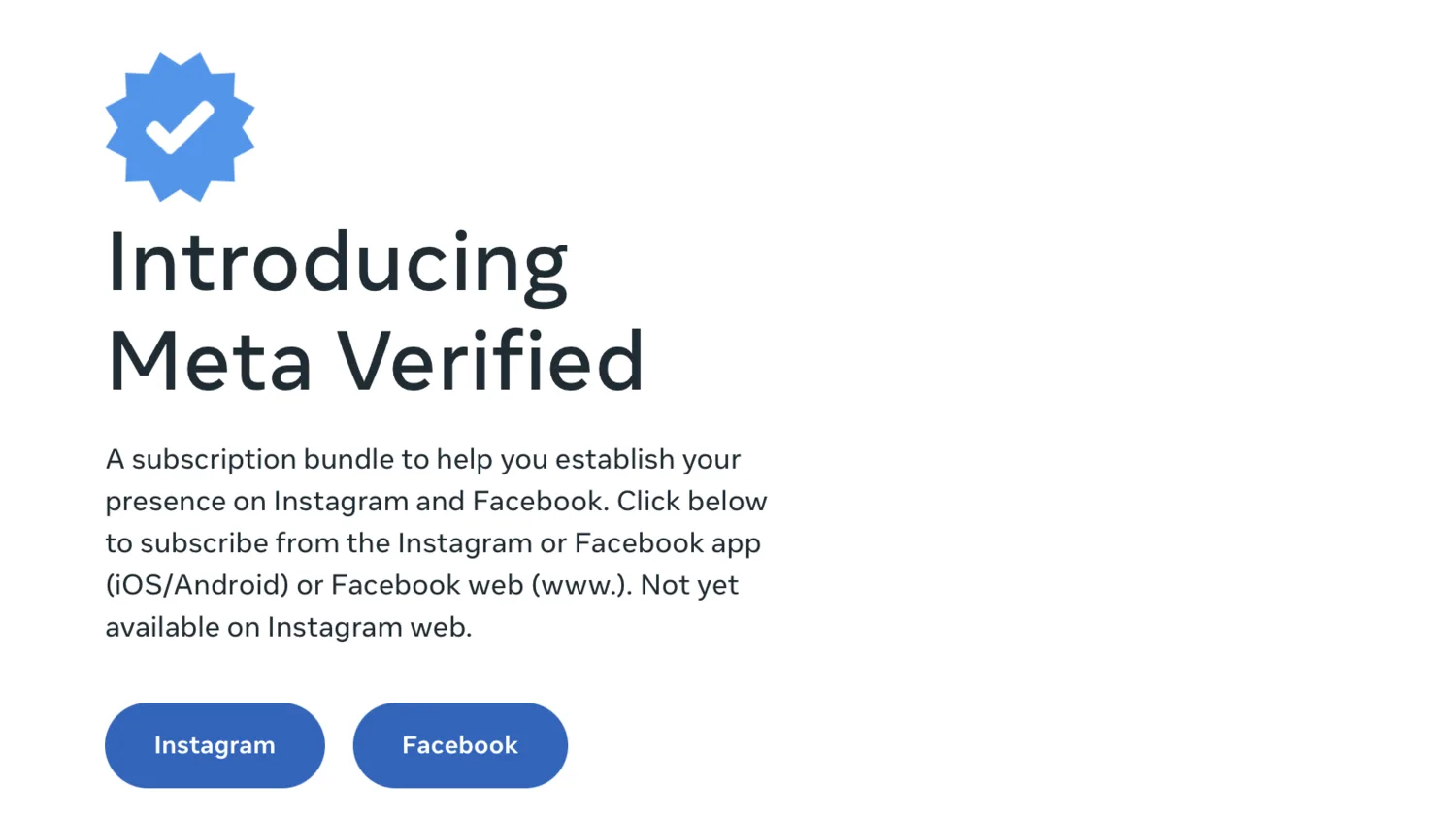 No habrá cambios en las cuentas en Instagram y Facebook que ya están verificadas en línea con los requisitos previos. A largo plazo, queremos construir una oferta de suscripción que sea valiosa para todos, incluidos los creadores, las empresas y nuestra comunidad en general. Como parte de esta visión, estamos evolucionando el significado de las cuentas verificadas en nuestras aplicaciones, para que podamos ampliar el acceso a la verificación y más personas puedan confiar en que las cuentas con las que interactúan son auténticas.